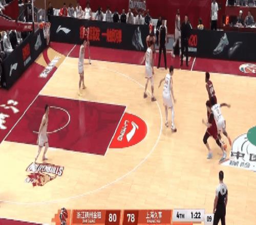 李悦洲的关键3分让浙江男篮在最后1分钟时手握5分领先,上海男篮陷入绝境。