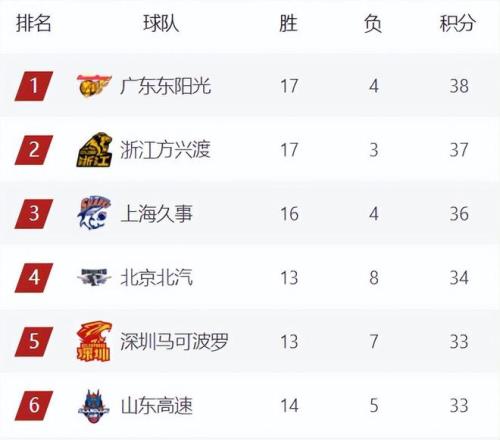 CBA积分榜最新排名出炉!广东爆冷输球排第3:北京第7辽宁第12