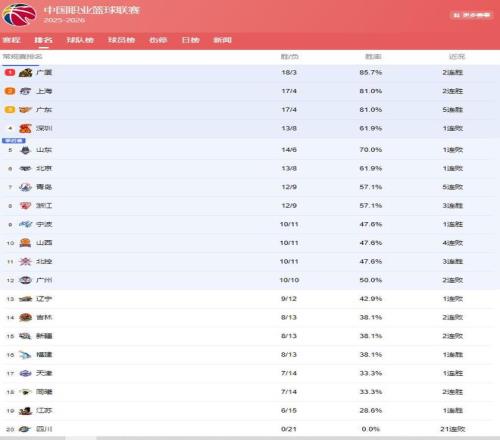 CBA25-26赛季常规赛,正在火热进行中,各支球队为了排名和季后赛而努力奋战,比赛打的也是精彩不断,逆转、爆冷那是时常发生,排名也在随时发生变化!在第21轮比赛打完后,上海登上第2,北京队5,山东杀进前4,6队展开第12名的争夺!