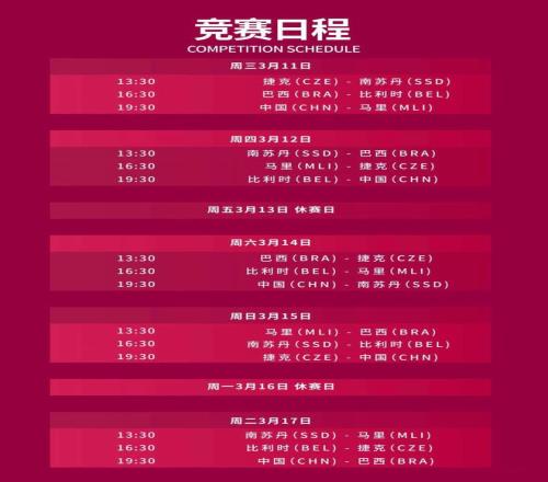 中国女篮第二场、第三场分别将在3月12日对阵比利时女篮、3月14日对阵南苏丹女篮