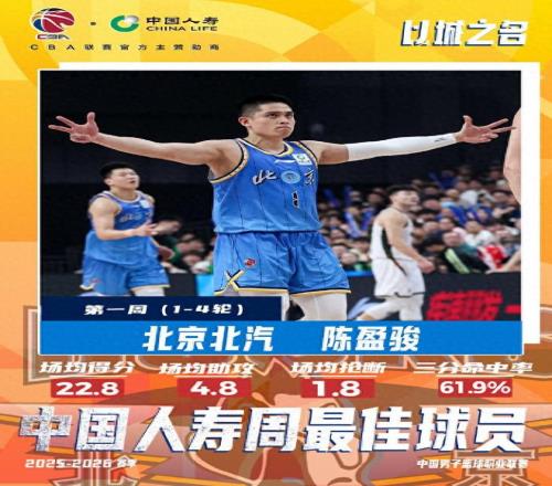 CBA官宣首周周最佳:陈盈骏率北京4连胜第一56分外援当选