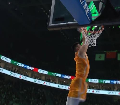 俞泽辰找了赵继伟进行配合,赵继伟抛篮板侧边,接上转体反扣,获得50分,延续了悬念。