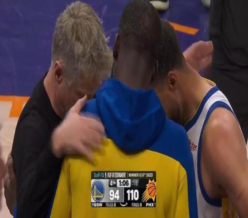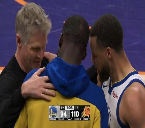 意味深长的拥抱,勇士赢球无望,科尔与库里&追梦相拥致意