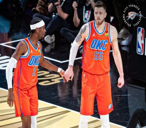 雷霆五虎霍姆格伦、多尔特、哈尔滕施泰因、杰伦、亚历山大本赛季首次合体首发出战。