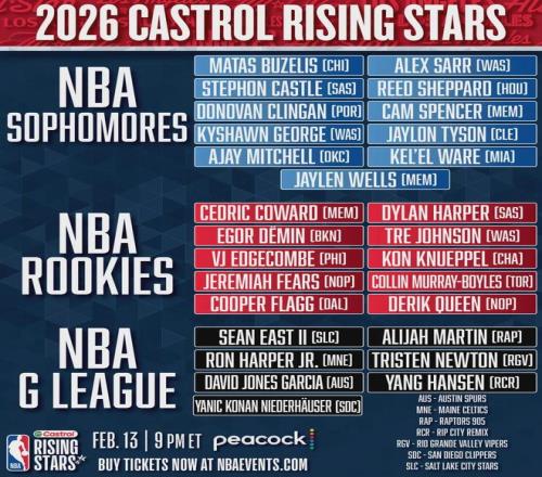 弗拉格(独行侠)、克尼佩尔(黄蜂)、埃奇库姆(76人)、科沃德(灰熊)、奎因(鹈鹕)、特雷-约翰逊(奇才)、迪伦-哈珀(马刺)、博伊尔斯(猛龙)、杰明(篮网)、费尔斯(鹈鹕)