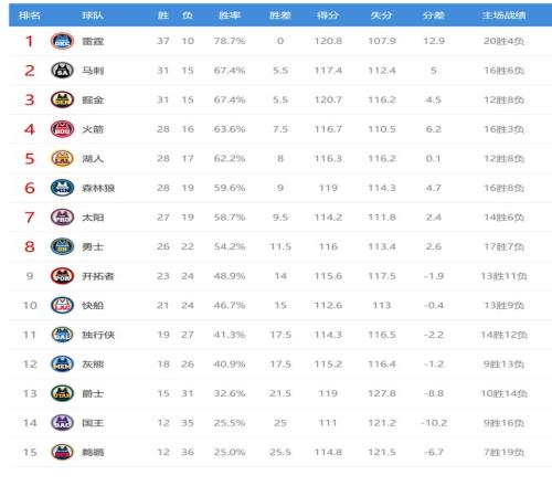 湖人赢球后2连胜,战绩28胜17负排名西部第五,只落后今日赢球的火箭0.5个胜场,两队的竞争很激烈。