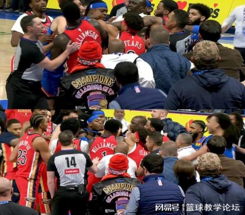 鹈鹕最后一攻,费尔斯抢到前场篮板,上篮时遭到多尔特犯规。费尔斯很生气扭头跟多尔特对峙,多尔特体型占优率先动手,直接揪住费尔斯衣领。比赛已经结束,两队球员都从场外冲了进来,二十几人围在一起,裁判都挤不进去。
