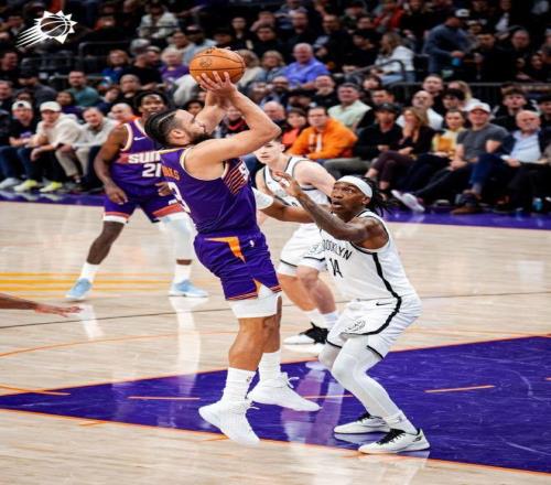 太阳过去两场连输老鹰与热火遭遇2连败,篮网过去5场遭遇5连败,本赛季首次交锋太阳客场126-117战胜篮网。本场太阳缺少布克、杰伦-格林与吉莱斯皮,篮网缺少马丁、海史密斯与克洛尼。首节前半节双方持续交替领先,缠斗至太阳15-14领先,太阳一波8-0攻势扩大9分优势。篮网回敬一波15-5攻势反超比分,狄龙一度被吹罚一级恶意犯规,首节结束太阳28-29落后篮网。首节篮网23中13,其中三分4中1,波特7中6得到12分;太阳24中13,其中三分6中1,马威7中5得到10分与狄龙7分。