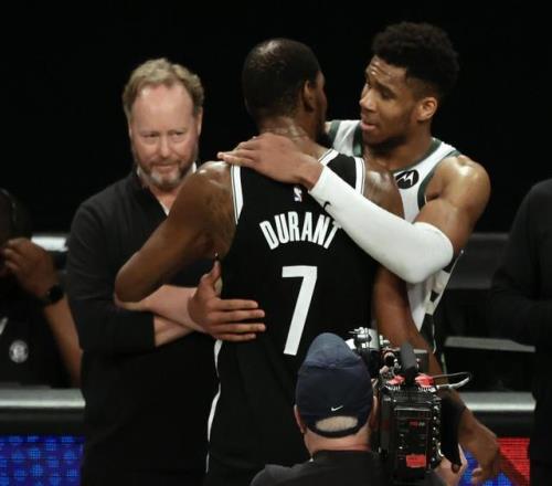 7、2020-21赛季,雄鹿次轮与坐拥三巨头的篮网大战7场。首战,哈登伤退;G4,字母哥踮脚欧文,导致欧文伤退;G5,哈登复出,但状态大不如前;G7,战至最后时刻,杜兰特的三分绝杀,因脚太大而踩线,只算做2分,雄鹿冒险过关;