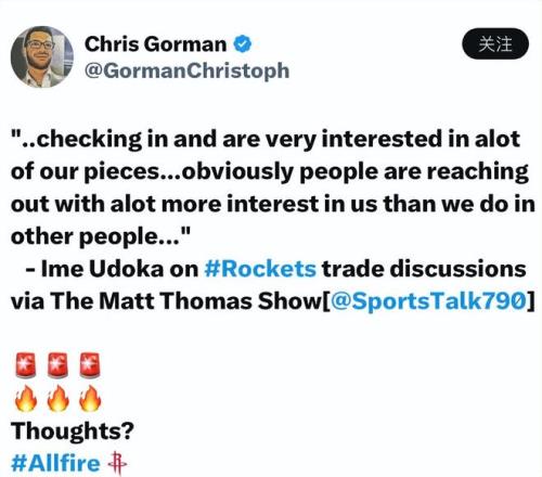 乌度卡还谈到近期跟火箭队讨论交易的球队非常多,这些球队主动联系了我们,他们对我们队内多位球员都很感兴趣,这远远超出了我们的预期。