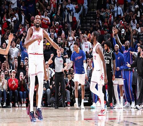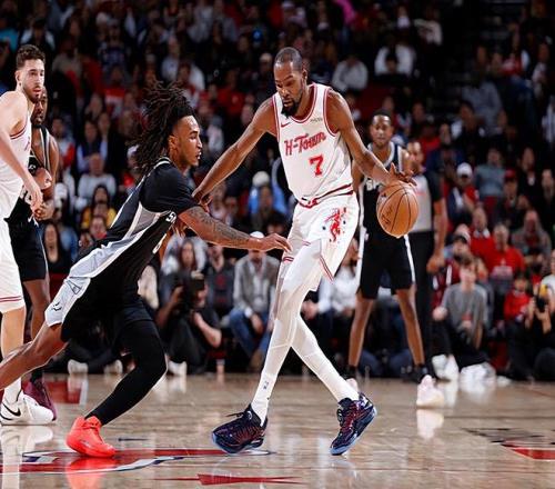 本场比赛中,火箭的先发锋线球星凯文-杜兰特(Kevin Durant)的表现只能算是中规中矩,而且他在比赛关键时刻也没有起到应该起到的作用。杜兰特全场出场36分10秒,投篮17中8,三分线外4中2,罚球6中6,得到了24分2篮板6助攻1盖帽的数据,还有3次失误和2次犯规,正负值为-9。杜兰特在上下半场的表现存在着巨大的差异,他在上半场表现不错,拿下了13分。即使是在第三节,他其实也是起到了一定的作用的,并且通过各种方式拿下了7分。然而到了比赛第四节,在全队进攻哑火的情况下,杜兰特完全没有展现出自己的硬解能力,他仅以4中1的效率得到了4分,完全没有承担起应该承担的责任。不仅如此,杜兰特在其他方面的表现也是令人失望的,也同样没有起到作用,这也在一定程度上导致了球队的这场失利。