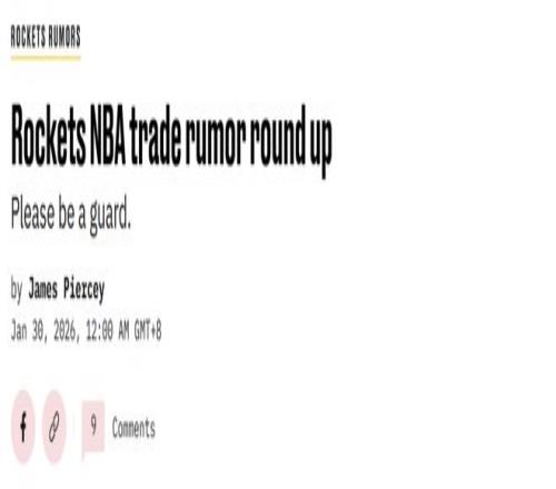 消息来自于美媒OOSSports记者Rob Murrows,他曝出76人队正在听取相关报价,火箭队对其颇感兴趣。