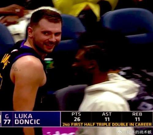 半场只打了18分04秒,14中9,三分8中5,罚球5中3,狂砍26分11篮板11助攻2抢断的三双数据,湖人队史最快,历史第五快。