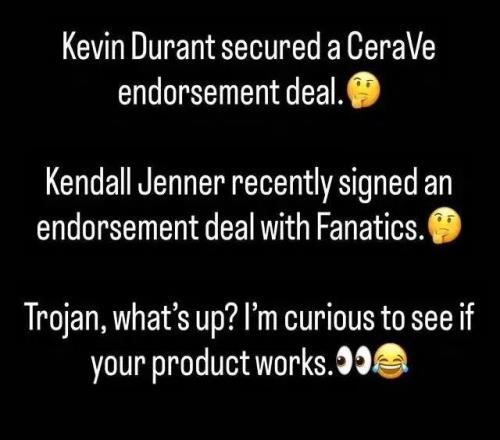 “凯文-杜兰特拿下了CeraVe(润肤乳)的代言。”