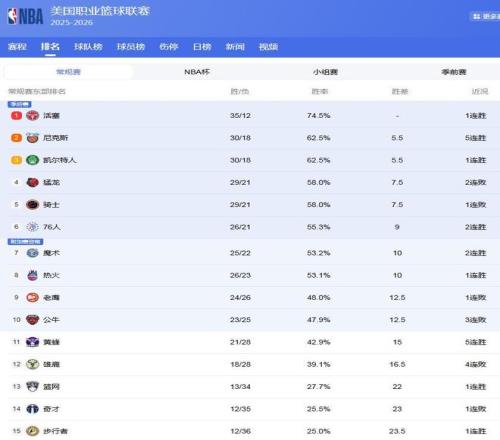 NBA全明星赛季愈发临近,NBA得争夺也变得更加激烈!西部除了雷霆队稳坐第1外,2-6名的球队都有拿下第2的机会!东部同样精彩,尼克斯、绿军不相上下,4-7名的4支队伍抢第4,排名争夺进入了白热化,现在我们来看看NBA排名:约基奇复出,掘金冲第2;湖人第5难保,5队抢东部第4!