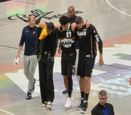 而最让掘金绝望的是,首发五人组本赛季同时在场的时间太少了!赛季开局阶段,先是戈登和布劳恩轮流受伤,休战都是1个月起!之后到了12月份,卡梅伦约翰逊又遭遇重伤,再到12月底约基奇重伤,1月底复出后状态全无。包括顶替戈登的沃特森打出生涯最佳表现后,同样是腿筋伤势,休战1个月了,复出遥遥无期!相对来说,穆雷算是本赛季掘金阵中,真正能够稳定贡献产量+保底球队下限的第一选择,包括1月份和2月初,穆雷也都是遭遇脚踝伤病,但是他一直带伤坚持,只不过这一次,他自己都挺不住了!