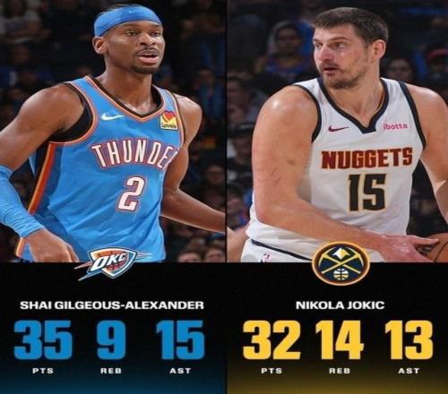 更可怕的是SGA已经连续第126场得分20+,追平了上古大神张伯伦在1963年创造的连续126场砍下至少20分NBA历史最长纪录。作为当今联盟现役第一人,亚历山大绝对是实至名归!至于约基奇同样打出统治级表现,19投12中,三分6中3,砍下32分14篮板13助攻的三双数据。但在亚历山大绝杀的映衬下,这位三届MVP得主也只能黯然离场。