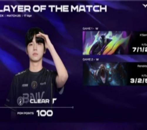 Clear整个系列赛发挥出色,斩获BFX对阵KRX系列赛POM