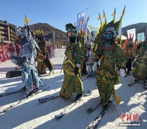 11月22日,吉林省2025-2026新雪季开板大会在吉林市举行。图为身穿京剧服饰的滑雪爱好者。 中新社记者 石洪宇 摄