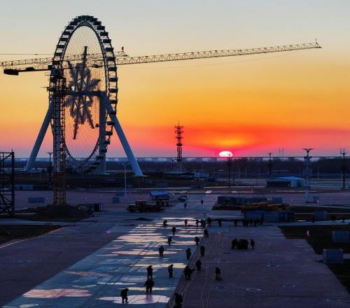 第一帧:11月25日,随着20万立方米存冰陆续运抵园区,第二十七届哈尔滨冰雪大世界冰建工程正式启动。目前,主塔龙骨正在搭建,超级冰滑梯施工也已展开。预计于12月中下旬正式开园。