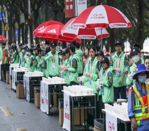 考虑到比赛当日可能出现较高气温,广马组委会不仅在赛道沿途增设了喷淋设施,也增加了降温海绵、冰块等防暑物资补给。