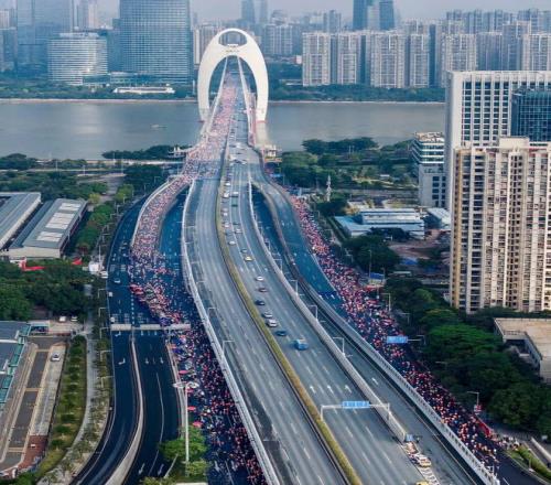 此外,今年的广州马拉松还有不少其他亮点:比如首推“不存衣”绿色模式、号码布新增“存衣车/包/帐篷”编号、起点+赛道新增390个厕位等。在赛事服务保障和服务方面都得以优化和提升。