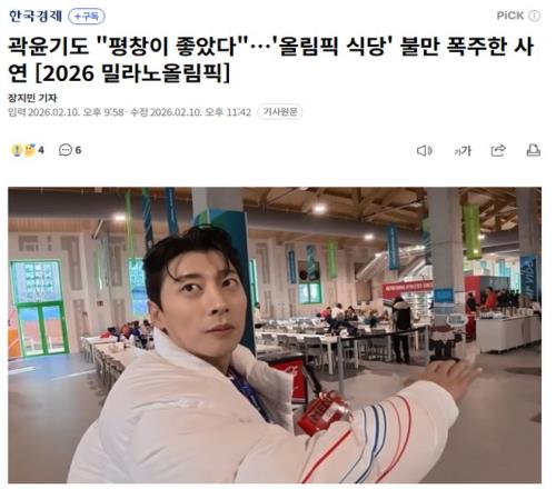 郭润起在视频结尾坦言,想在米兰运动员村食堂“完全吃饱可能有点困难”,但他也理解,这份菜单应该是经过计算的,目的是让选手摄取优质营养。他鼓励大家支持韩国运动员:“希望选手们吃了这些饭菜,能取得好成绩,我们一起为他们加油。”