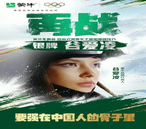 从2月7日开赛至今,蒙牛始终坚守“陪伴者”角色,其打造的《骨子里的要强》TVC,聚焦谷爱凌带伤完成动作、摔倒后起身等韧性瞬间,诠释“要强不是必须夺冠,而是永不言弃”的内涵。2月9日谷爱凌带伤摘银后,蒙牛第一时间发布海报:没有“恭喜夺冠”的华丽辞藻,只有她腾空的剪影和鼓励——“再战!不馁不弃,下一场再战。”这张海报瞬间刷屏,被赞真正懂奥运精神。