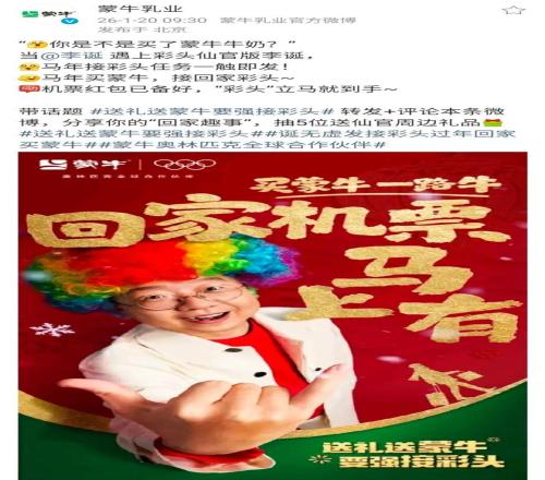 作为中国乳业首个且唯一的奥林匹克全球合作伙伴(TOP),蒙牛在这场“中国年+冬奥”的双重叙事里,成为唯一一家在社交声量、互动量、品牌口碑三个维度上同时领跑的赞助商。