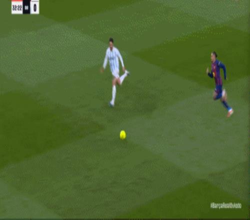 第一次是在奥维耶多门将阿隆-埃斯坎德尔在禁区外接球,裁判穆努埃拉判罚了直接任意球,因为他认为球员持球走出了禁区,视频显示,奥维耶多门将因抗议而被出示黄牌。