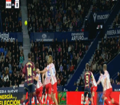 第68分钟,巴勃罗-马丁内斯超远距离打门尝试,皮球高出球门