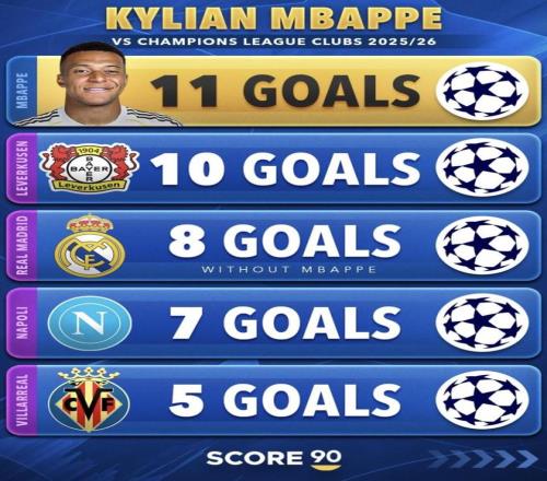 欧冠进球对照:姆巴佩11球压全队!看似光鲜实则暗藏隐忧
