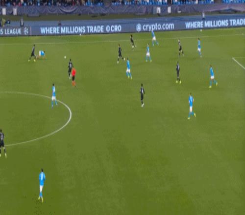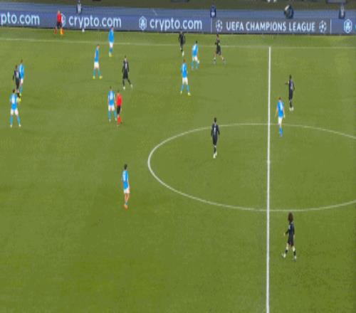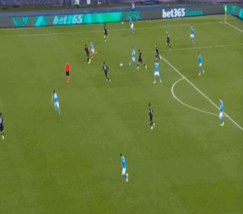 你说这是有意为之,其实也算不上,毕竟没有了诺阿-朗和内雷斯,那不勒斯进行推进的方法其实已经非常有限,除了直接找赫伊伦,无非就是靠麦克托米奈进行后上冲击: