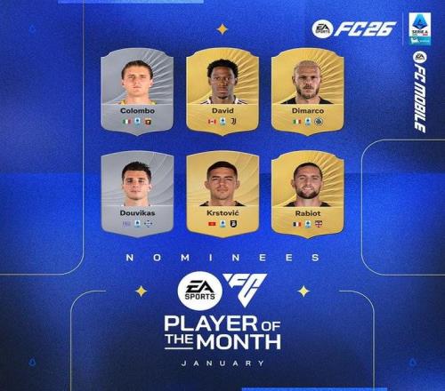 北京时间1月29日,意甲1月最佳球员候选名单公布,这6名球员为科隆博、乔纳森-戴维、迪马尔科、杜维卡斯、克尔斯托维奇、拉比奥。