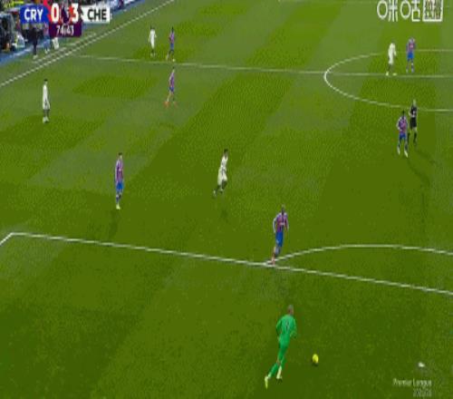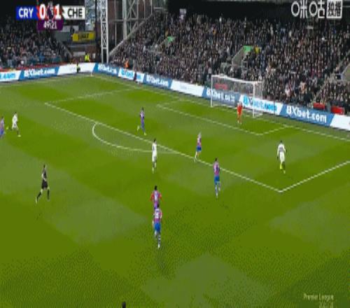 第34分钟,埃斯特旺奔袭半场,随后冷静破门,切尔西1-0水晶宫