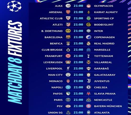 其中皇马将在客场对阵穆里尼奥执教的本菲卡,这场比赛有许多看点,穆帅将与昔日弟子阿韦洛亚斗法,皇马力争前3的排名,而本菲卡只要不胜,就将告别淘汰赛。其他比赛中,巴黎主场跟纽卡的比赛堪称生死战,两支球队分别排名第6、7位,面临着谁输谁就去附加赛的情况,卫冕冠军全力争胜。