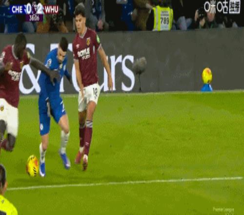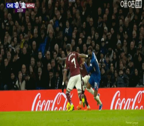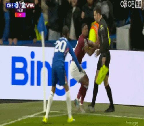 第13分钟,萨默维尔推倒吉滕斯,裁判示意犯规
