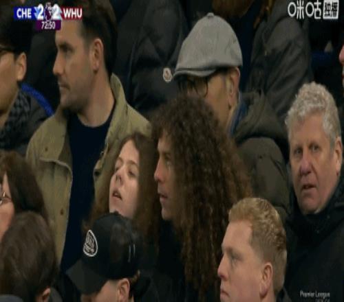 第74分钟,略显喜感,看台球迷留着库库雷利亚同款发型