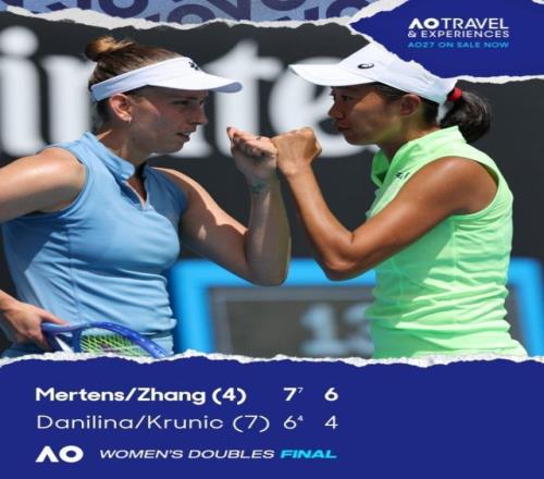 2026年澳网女双决赛,4号种子张帅/梅尔滕斯7比6(4) 6比4击败7号种子达尼丽娜/克鲁尼奇。这是张帅/梅尔滕斯搭档第一次赢得大满贯冠军,也是37岁张帅摘得的第三座大满贯双打冠军!她们将获得81万澳元(折合人民币约392万元)冠军奖金。首盘比赛,张帅组合在1比4落后情况下,连赢4局,最终通过抢七以7比6(4)拿下第一盘。第二盘,张帅组合在5比0领先的情况下,两次错失冠军点,被对手追成5比4,最终张帅组合在第三个发球胜赛局胜出。张帅继2019年澳网搭档斯托瑟收获生涯大满贯首冠后,再度斩获澳网女双冠军。
