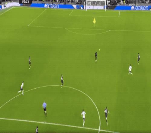 7分钟后,曼城还有机会,罗德里的长传打穿热刺防线,哈兰德不停球直接挑射,皮球越过维卡里奥,砸在球网上方。
