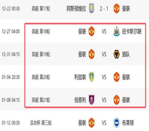 对于曼联来讲,这绝对是一波“蜜月”赛程,在球队缺兵少将的情况下,能够有这么舒服的赛程,曼联绝对是撞大运了。要是这4场比赛,曼联果真能拿到12分,他们大概率能杀进前四。本赛季,曼联的目标就是竞争一个欧冠席位,去年夏窗,曼联又花了超过2亿欧元引援,球队高层和球迷,不可能再接受一个表现平庸的赛季,以曼联的声望和地位,他们必须重回欧冠,这也是阿莫林必须完成的任务。万一本赛季还是无缘前四,那曼联高层恐怕要考虑换帅了,一旦长期无缘欧冠赛场,对曼联的影响实在太大了,他们随时会彻底掉阶,成为欧洲二流球队。当年的弗格森,一手把曼联带回巅峰,并成为欧洲最强的球队之一,希望曼联别再辜负弗格森和一帮前辈的努力了!