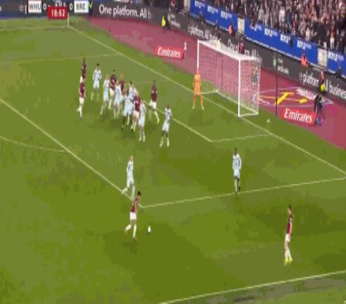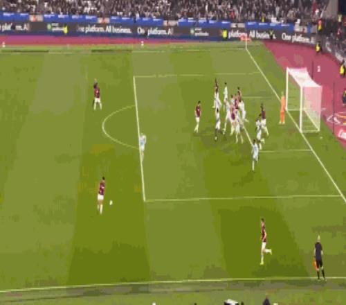 第20分钟,先拔头筹,鲍恩门前得分,西汉姆联1-0