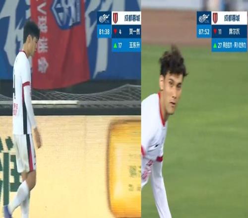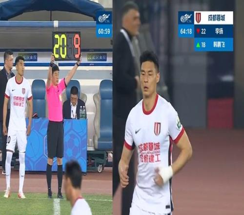 在武汉三镇0-1成都蓉城的比赛中,客队4次换人换下4人。第60分钟,王子铭换下费利佩。第64分钟,韩鹏飞换下李扬。第81分钟,王东升换下贺一然。第87分钟,拜合拉木换下“成都姆巴佩”韦林顿。