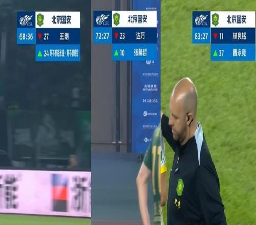 值得一提的是,浙江队看到对手用了4次换人,也跟着有样学样(下图),分别在第59分钟、第74分钟、第86分钟以及第94分钟进行换人。