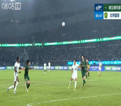 除了成都蓉城,浙江队0比0北京国安的比赛中,双方都使用了第4次换人(上图)。第68分钟,阿不都海米提换下王刚。第72分钟,张稀哲换下达万。第83分钟,曹永竞换下林良铭。最后一次换人是因为恩科洛洛伤倒在地,发生在一次争顶当中(下图)。这种由头部顶撞造成的“脑震荡换人”有情可原,至少能解释得通。
