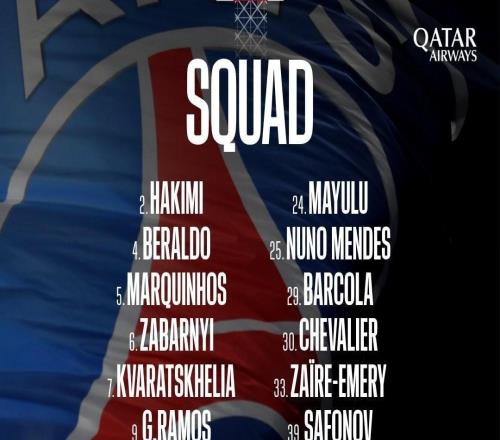 巴黎欧冠战纽卡大名单:登贝莱领衔,阿什拉夫、内维斯在列